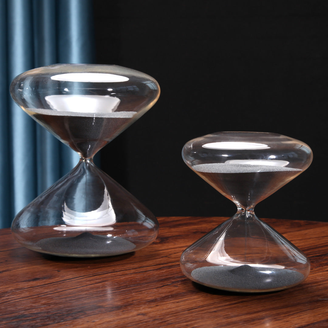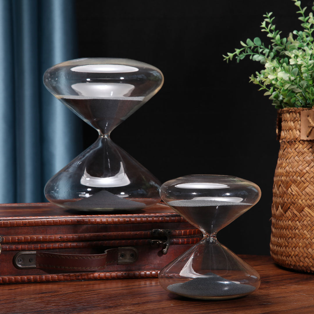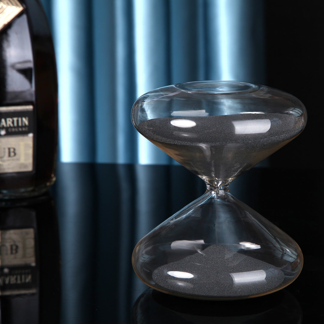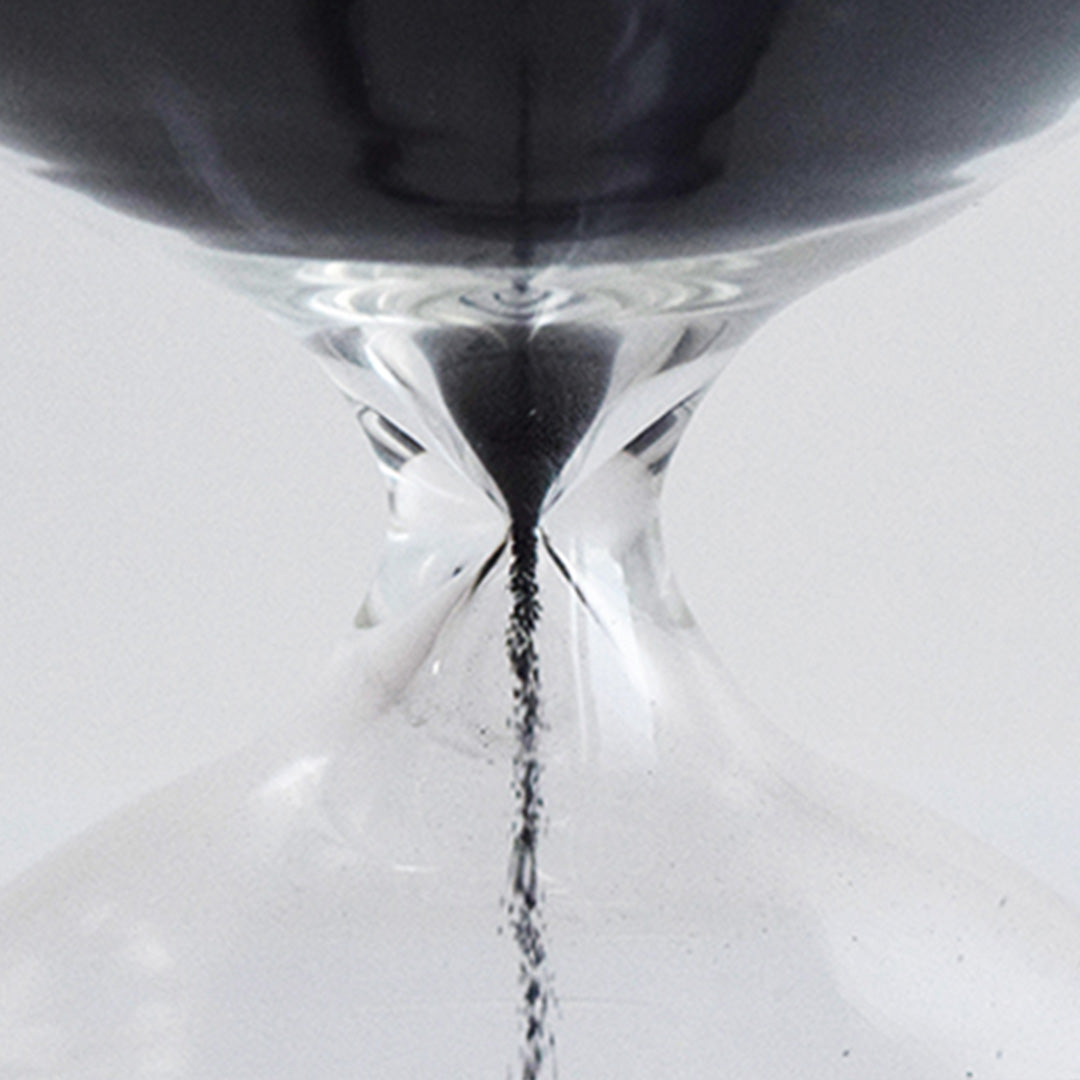 Each glass is hand-blown borosilicate glass (like pyrex). Borosilicate glass is a type of glass that contains boron trioxide which allows for a very low coefficient of thermal expansion. This means it will not crack under extreme temperature changes like regular glass. It's a standard 25-minute timer designed for the Esington timeboxing method (similar to the Pomodoro method with a few cue differences).